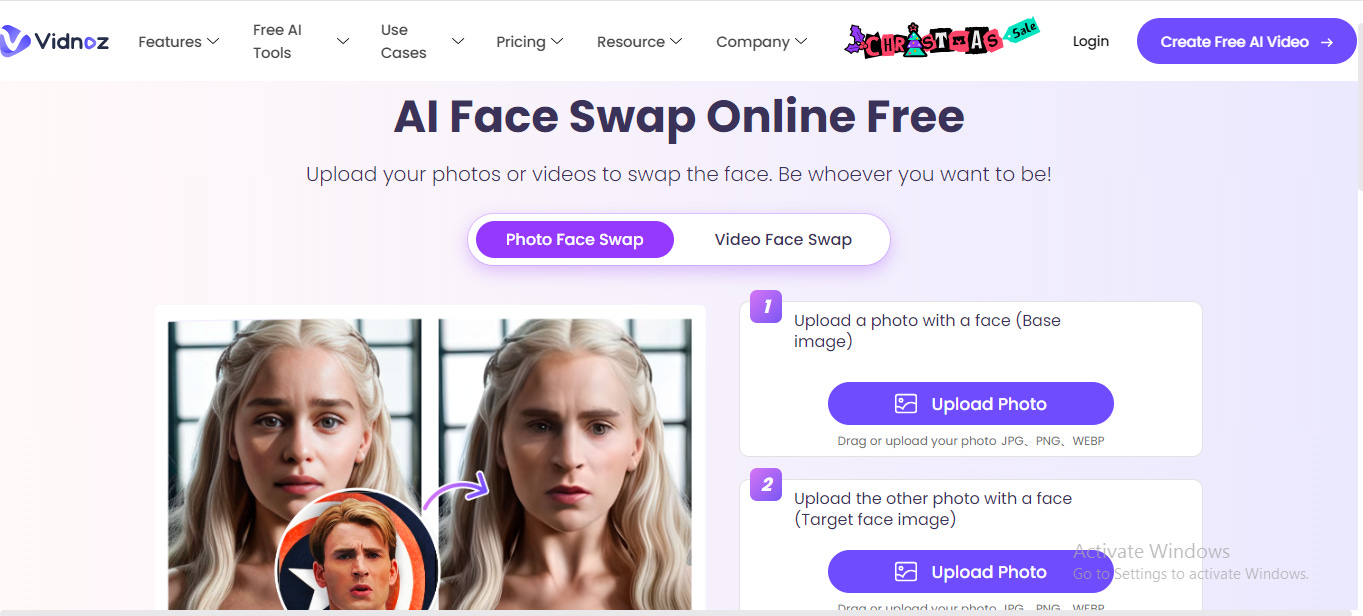 Vidnoz is a multi-functional face-swapping online tool.