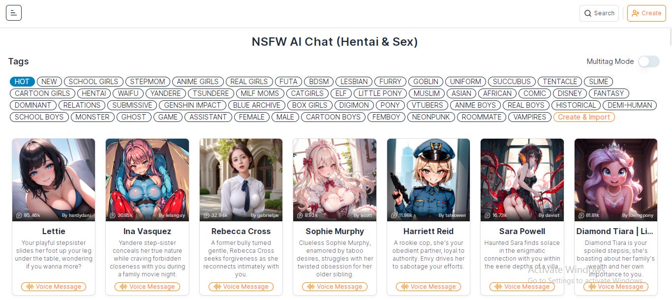 From naughty step sisters to bold dominatrixes and innocent submissives, Unhinged AI features all the characters that can cater to your sexual fantasies. The platform has a straightforward interface and allows you to navigate virtual characters within a few clicks. Moreover, if you want to customize new AI characters, the platform has a specialized “create character” option for you.