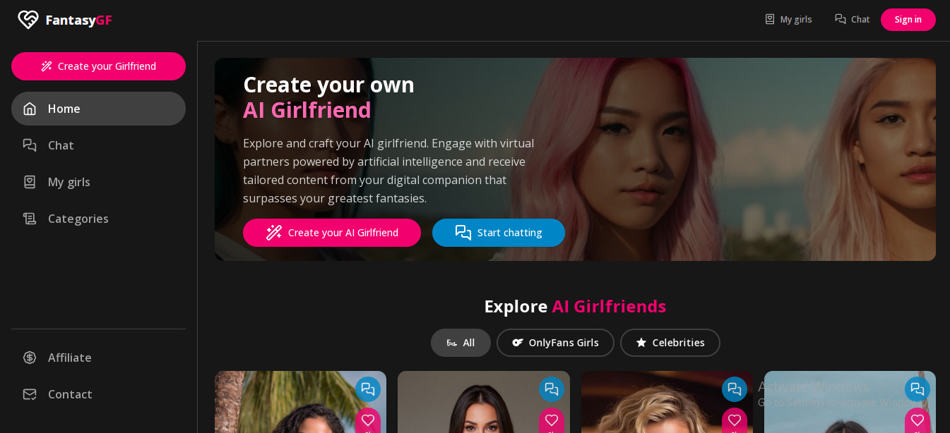 FantasyGF is a professional-level platform where you can meet your ideal AI sexting partner and fulfill your wildest fantasies. The best part about FantasyGF is its “OnlyFans Girls” and “Celebrities” feature, where you can sext with the hottest yet popular AI characters. The platform features dozens of pre-made AI models, each with a specific role, allowing you to choose your AI girl based on your mood.