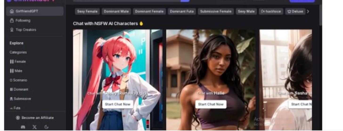 GirlfriendGPT features hundreds of AI roleplaying characters in sexual fetishes and kinks, allowing users to explore their fantasies without the fear of judgment.